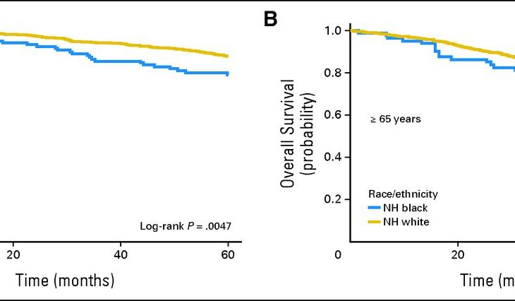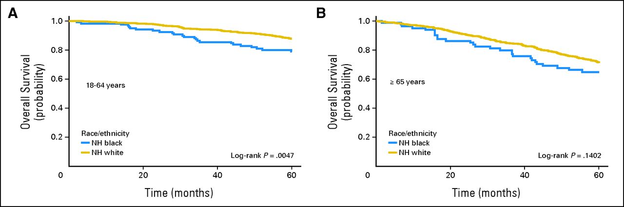 While moderate differences were found between black and white men in different age groups when it comes to specific elements of treatment (see below) the overall finding is that survival, when adjusted for insurance and area-level median income, was not significantly different between the groups.