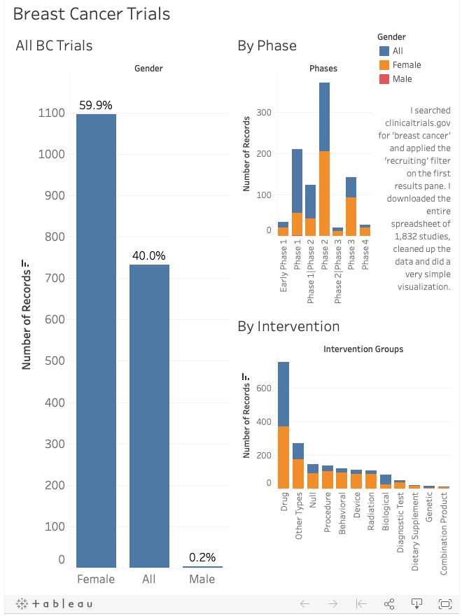 As I wrote in the Breast Disease Quarterly piece linked above, my request to clinical trial investigators is to think of the default to be including men (i.e. “both genders”) or to provide a reason for not including men.